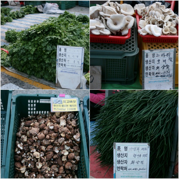 “여기 처음 문 열고나서 계속 나왔지. 20년 다 됐지, 아마. 영감이랑 코딱지만하게 농사짓는 거랑, 집 앞 텃밭에서 기르는 놈들 들고 나오는 거야. 봄철에는 동네 뒷산에서 나물도 좀 캐오고. 가끔 5일장에도 가지고 나가는데 여기가 장사는 훨씬 잘 돼.”