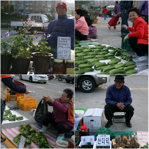 “오늘은 한 7만원어치 팔았나, 하루 평균 10만원 안팎으로 팔아요. 우리같이 농사 크게 안 짓는 사람들은 밭뙈기보다 직거래가 훨 낫죠. 매일 나와서 팔아야 하니깐 수고는 더해도 값은 더 받으니깐. 여기처럼 판로만 잘 뚫려 있으면 농민들 파는 데 고생 안 하죠.”