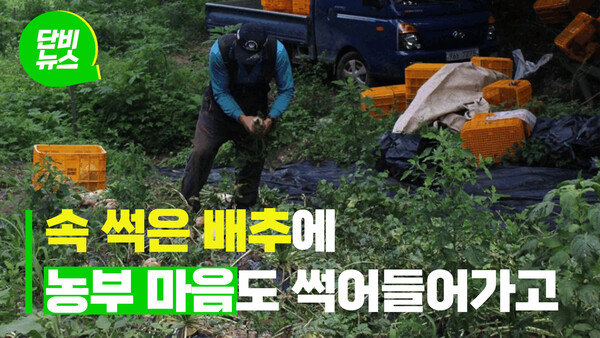 폭염과 폭우 등 이상기온이 지속돼 정상적으로 영글지 못하고 속이 썩어버린 배추였습니다. 윤 씨는 농사지은 배추를 전량 경기도 친환경 급식으로 납품해 왔습니다. 하지만 2022년 출하한 2톤(t)가량의 배추는 모두 반환당했습니다. 겉보기엔 멀쩡하지만 갈라 보면 알 수 있는 ‘속썩음병’에 걸렸기 때문입니다.