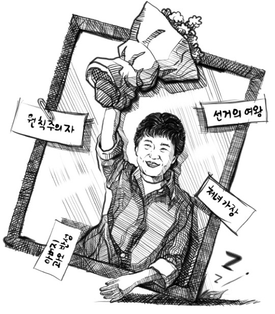‘민족중흥의 지도자였던 아버지와 어머니를 비명에 보낸 고아, 결혼도 하지 않고 가정을 지켜온 처녀 가장, 그러고도 웃음을 잃지 않는 고상함, 이명박 정권의 박해 속에서도 여당을 지켜낸 ‘선거의 여왕’, 거기에 아버지의 과오를 반성하기까지!’ 어떤 인생도 뺄 거 빼고 묘사하면 감동의 드라마가 된다. 박근혜 후보가 대통령이 된다면 보수언론의 이미지 만들기와 진보언론의 직무태만이 만들어낸 합작품일 것이다.
