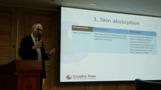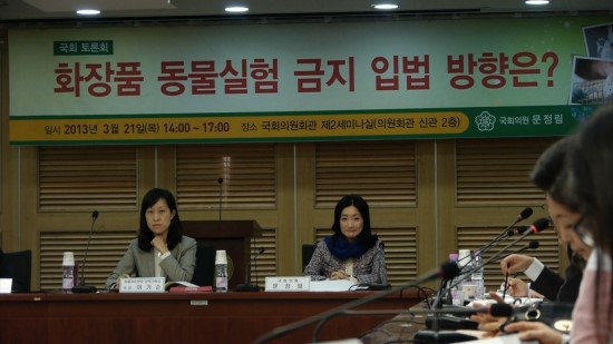 팔머 박사가 활동하는 크루얼티 프리 인터내셔널은 유럽에서 동물실험 금지법을 끌어내는 데 주도적인 역할을 한 단체. 유럽연합(EU)은 지난 11일 동물실험을 거친 화장품에 대해 수입과 유통·판매를 금지했다. 이런 흐름에 힘을 얻어 국내동물보호단체인 ‘동물자유연대’와 새누리당 문정림 의원이 국내에서도 동물실험 금지 입법을 추진하기 위한 토론회를 열었다. 식품의약품안전청과 농림수산식품부 등 정부부처 관계자와 국내 화장품업계 관계자, 국회보건복지위원회 소속 의원들이 이 자리에서 입법의 필요성과 법안의 효과적 정착 방안에 대해 논의했다.