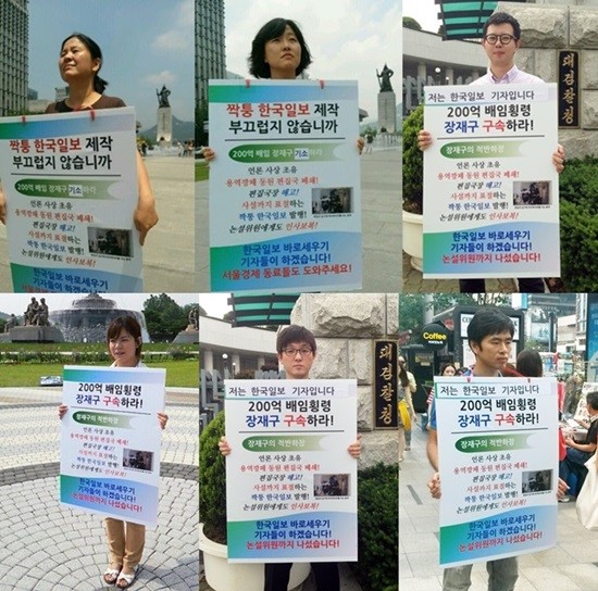 <한국일보>가 사주의 경영비리와 인사전횡에 저항하는 기자들의 편집국 출입을 막고 간부급 10여명으로 신문을 파행제작한 지 4일로 20일째를 맞은 가운데 노사협상은 표류하고 사측이 경력기자 공채에 나서는 등 사태가 장기화 조짐을 보이고 있다. 거리로 나온 기자들은 청와대, 국회, 광화문광장 등에서 1인 시위 등을 통해 여론에 호소하고 있으며 정치권과 사회 각계에서 ‘비리 사주 처벌’과 ‘편집국 봉쇄 해제’ 등을 촉구하는 성명이 이어지고 있다.