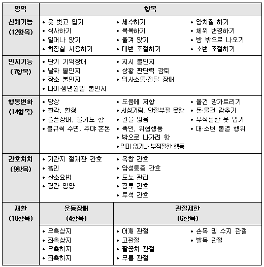 장기요양보험의 판정기준은 주로 신체 기능이 어느 정도인지를 묻는 질문들로 이루어져 있다. 치매 환자의 주요 특성인 ‘인지기능 저하’를 반영하지 못하기 때문에 치매 초기나 경증 환자들을 배제하는 결과를 낳는다. 망상, 배회증상 등으로 일상생활이 어려운 치매 환자라도 신체 기능이 정상이면 혜택에서 소외된다. ‘복지 사각지대’에 놓이는 것이다.