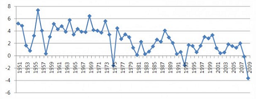 “60년대 후반부터 선진국들의 경제성장률이 5% 대에서 2% 이하로 급격하게 떨어지면서 장기 저성장 국면을 맞이합니다. 1970년에는 물가와 실업률이 같이 상승하는 스태그플레이션까지 발생해 선순환 구조에 균열이 생겼어요.”