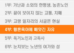 ‘준비되지 못한’ 노후를 맞이한 우리나라 노인은 절반 가까이가 빈곤층이다. 가난은 질병과 외로움 등 노년의 고통을 증폭시킨다. 불편한 몸으로 남의 밭일을 하는 농촌 노인이나 지하철택배로 생계를 유지하는 도시 노인 등 가난한 노년은 죽을 때까지 ‘밥벌이의 구차함’에서 놓여나지 못한다. 사설 요양병원에서 학대 받는 치매노인, 골방에서 혼자 숨을 거두는 고독사 등 비극적 현장도 소리 없이 늘고 있다. <단비뉴스>는 청년의 ‘가족’이자 ‘내일’인 노인의 삶에 주목했다. 그들의 현실을 생생히 드러내면서 ‘노인복지후진국’을 벗어나기 위한 과제를 점검하고, 독자와 함께 대안을 모색하고자 한다. (편집자)