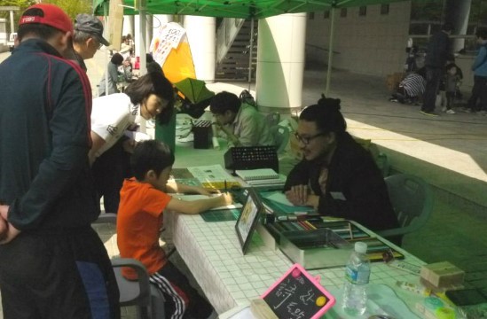 경기도 수원의 벼룩시장과 안양시 관양시장, 남양주시 나눔장터 등에는 전국의 장을 돌며 판을 벌이는 ‘예술장돌뱅이’들이 종종 나타난다. 손한샘(45)씨를 주축으로 지난 2008년 결성된 프로젝트 예술가팀 ‘겸손한 미술관’에 속한 화가 10여명이 그들이다. 이 예술장돌뱅이들은 시장에서 만난 손님들과 이야기를 나누며 그 대화를 모티브로 그림 등 작품을 만들고 물물교환도 한다. 이 중 화가 김현승(34)씨는 지난 2012년부터 ‘감성우체국’이란 이름으로 손님과 함께 손글씨엽서를 만드는 작업을 하고 있다. 어떤 생각으로 예술가들이 장터로 나왔는지, <단비뉴스>가 지난 2일과 지난 5월 23일 두 차례 김 작가의 이야기를 들었다.