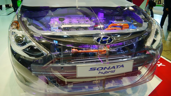 ▲ 전기자동차 개념 모형. 전기자동차 내의 배터리 위치와 크랭크 축과의 연결 관계를 볼 수 있다. ⓒ 이성제