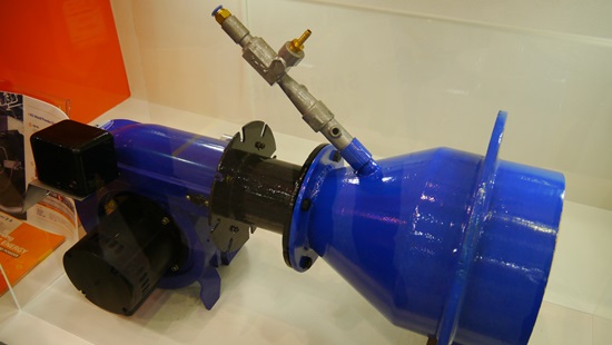 ▲ 기존 농가에서 쓰는 보일러에 부착해 '바이오매스 연료'를 이용할 수 있게 돕는 '바이오매스 연소기'이다. 분말형 펠릿을 보일러 내부에 분사시켜 잘 연소될 수 있도록 돕는다. ⓒ 이성제