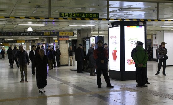 “집에 있으면 눈치가 보여서 어디든 나오는 거야. 경제적 여유가 없으니 여기 멍청하니 앉아있는 거지. 주머니에 용돈이라도 있으면 소주라도 한잔 하는 거고, 없으면 자판기 커피 하나 뽑아 놓고 하루 종일 지나가는 사람들을 쳐다보는 거지.”