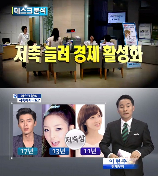 “시청자 여러분은 요즘 저축하시나요? 일정 수준의 저축은 개인, 국가 모두에게 꼭 필요합니다... 경제 빈혈 생기지 않도록 국가차원의 묘안이 필요한 때입니다. 데스크 분석입니다.” (10/29 저축 늘려 경제 활성화)