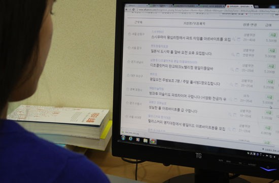 서울의 한 사립대학에서 예술학을 전공하는 김지현(22․여․가명)씨는 지난 9월과 10월 두 달간 ‘쓰리잡(three job)’을 뛰었고, 지금은 ‘투잡(two job)족’으로 살고 있다. 지현씨는 2011년 입학 후 매학기 성적장학금(180만원)과 국가장학금(50만원)을 받아 450만원이 넘는 등록금부담을 절반으로 줄였고, 나머지 학비와 월 40만원 가량의 용돈은 부모님께 받아썼다. 그러나 최근 집안 형편이 기울면서 용돈 받기가 부담스러워져, 이번 학기엔 장학금을 위한 성적경쟁을 포기하고 아르바이트로 최대한 많은 돈을 벌기로 작정했다.