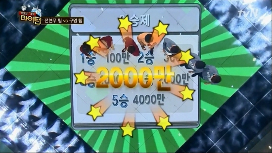 1승을 달성하면 100만원, 2승은 300만원, 연속 5승을 달성한 팀에게 4,000만원을 주는 것이 게임에 참가하는 혜택이다. 상금 5억을 내건 <슈퍼스타 K5>도 실패를 거두는 이 시점에 액수자체로도 흡인력이 없으며, 그 상금은 시청자와는 무관하다. 진행 과정에서 즐거움을 얻기 힘든데 게임의 목적도 단순히 상금타기에 불과하니 승리의 결말도 허무하다.