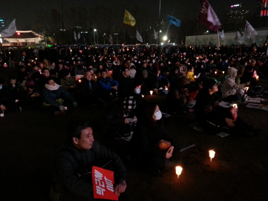 오후 7시부터 서울광장에서 이어진 촛불집회에는 앞선 국민파업대회와 달리 가족단위 시민들과 중고생들의 모습이 눈에 띄게 늘었다. 두 초등학생 자녀와 함께 경기도 안산에서 왔다는 도병구(44·자영업)씨는 "지금 언급되는 현안들은 40대인 나보다 앞으로 우리 아이들에게 더 영향을 미칠 것 같다"며 "내 아이들이 더 나은 세상에서 살 수 있었으면 하는 마음에 촛불집회를 찾았다"고 말했다. 아수나로 회원들은 “청소년은 투표권이 없어 이렇게라도 정치에 참여하기 위해 집회에 나왔다”며 “집회에 참가하지 않은 시민들에게 작은 목소리라도 내달라고 부탁하고 싶다”고 말했다.