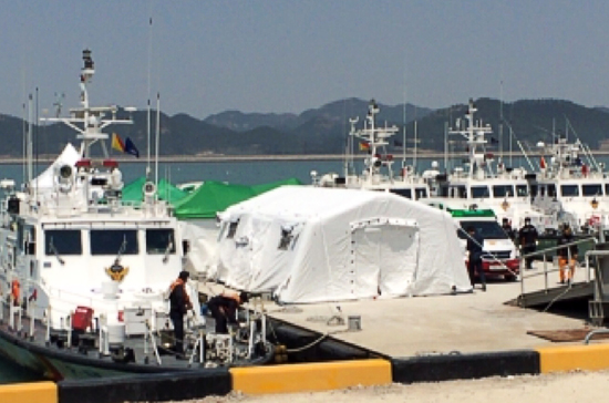 상황실 천막 부근에는 여고생으로 보이는 세 명이 실종자 가족들에게 지급된 회색 운동복차림으로 어깨에 담요를 걸친 채 사망자 현황이 정리된 대형게시판을 들여다보고 있었다. 이미 몇 번이고 확인했을 그 이름들을 보고 또 본 뒤 가족대기실 천막으로 무겁게 발걸음을 돌렸다. 상황실 옆 방파제에는 네 명의 중년 여성이 콘크리트 바닥에 스티로폼을 깔고 앉아 연신 두 손을 가슴에 모았다 풀기를 반복했다. 절을 하는 것 같기도 하고, 기도를 하는 것 같기도 한 동작에 표현하기 어려운 아픔과 간절함이 묻어났다.