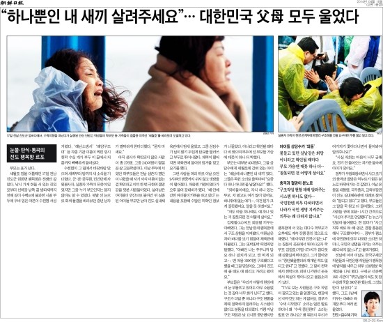 (조선일보 4/18 "하나뿐인 내 새끼 살려주세요"… 대한민국 父母 모두 울었다