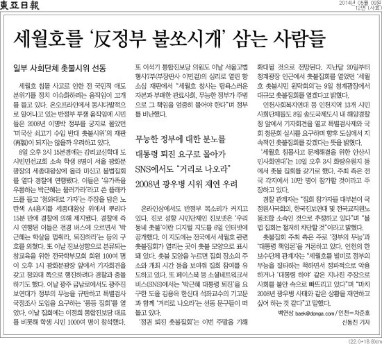 (동아일보 5/9 세월호를 ‘反정부 불쏘시개’ 삼는 사람들