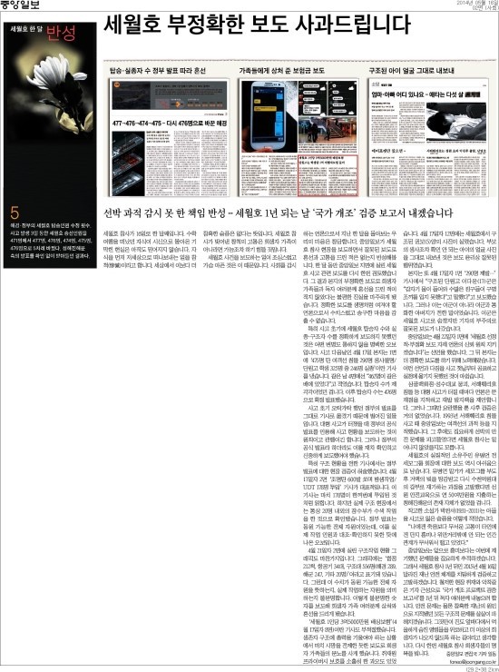 (중앙일보 5/16 세월호 부정확한 보도 사과드립니다