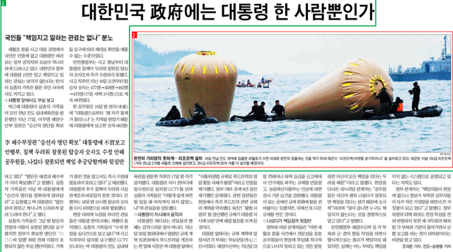 이 기사는 제목부터 대통령 책임에 선을 긋는 느낌입니다. 해경의 부실했던 초동대처에는 정부재난관리시스템 부실의 영향이 없지 않죠. 정부의 수반이 대통령인데, 정부와 대통령을 분리하는 발상 자체가 이상하게 느껴집니다. 장관이라는 사람들이 대통령 말을 받아 적기 바쁜 것이 지금의 국무회의인데 관료 탓만 한다고 될까요? 애초에 대통령만 바라보게 만들었던 국정 기조 자체가 문제죠, 이 기사는 그 사실을 은폐하고 있다고 생각합니다.