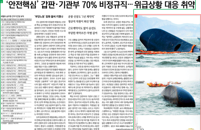 (경향신문 5/20 [심층기획 - 한국사회의 민낯 ‘세월호’]불안정한 고용, 직무 책임감 떨어뜨려… 육·해·공 모두 안전 위협