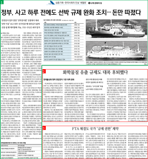 (경향신문 5/16 [심층기획 - 한국사회의 민낯 ‘세월호’]정부, 사고 하루 전에도 '선백 규제 완화 조치'…돈만 따졌다