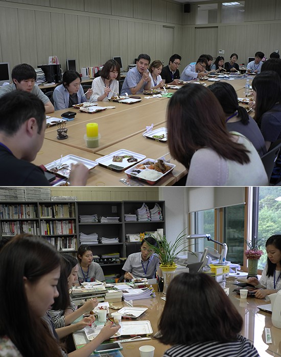 시간을 줄이기 위해 도시락으로 대신한 저녁 식사시간에는 3개 기자반과 2개 피디반으로 나뉘어 튜터들과 함께 담소를 나눴다. 캠프 참가자들은 교수진에게 그동안 언론사 시험을 준비하면서 느꼈던 궁금한 점들을 물어봤다. 많이 나온 질문은 글을 잘 쓰는 방법론에 관한 것이었다. 여러 가지 팁들이 제공됐지만, 이 원장은 특히 “스케치 기사나 칼럼을 쓸 때는 풍경이나 사례를 대비시키는 ‘콘트라스트 기법’이 읽는 이에게 감동을 준다”고 조언했다.