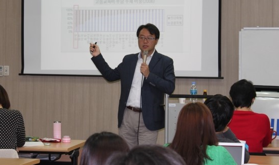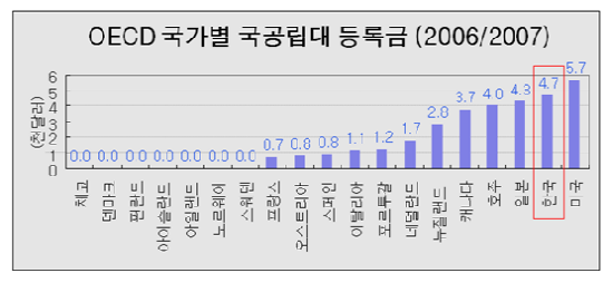 “미국에서 전형적인 학생들은 국공립대 다닙니다. 반면 한국에서는 전형적인 학생들이 사립대 다니죠. 그런데 한국의 사립대 등록금은 미국 국공립대 등록금보다 더 비쌉니다. 이해되셨나요? 그러니 한국의 등록금이 가장 비싸다고 볼 수 있는 겁니다.”
