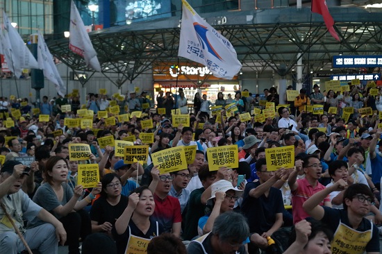 ▲ 시민들은 이날 서울역 앞에서 “특별법을 제정하라” “대통령이 책임져라” 등 구호를 목이 터져라 외쳤다. ⓒ최선우