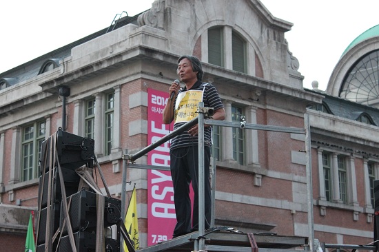 ▲ 인권재단 '사람'의 상임이사 박래군 소장이 연단에 올라 세월호 참사에 대처하는 정부의 무능함을 비난하고 있다. ⓒ배상철