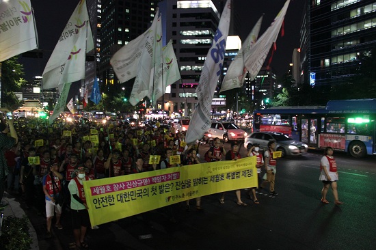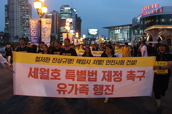 ▲ 서울역에서 집회를 마친 유가족과 시민들이 '특별법 제정 촉구' 현수막을 펼치고 시청앞 서울광장을 향해 행진하고 있다. ⓒ배상철