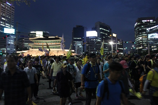 ▲ 서울역을 떠나 시청에 가까워지면서 시민들의 참여열기도 더 뜨거워졌다. 호기심 어린 눈으로 지켜보다 함께 걷는 사람들도 있었다. ⓒ배상철