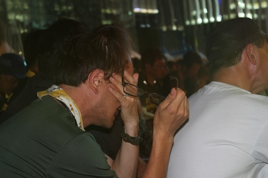 ▲ 서울광장에서 세월호 유가족대책위 김병관 대표의 연설을 듣던 한 시민이 눈물을 닦고 있다. ⓒ배상철