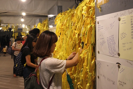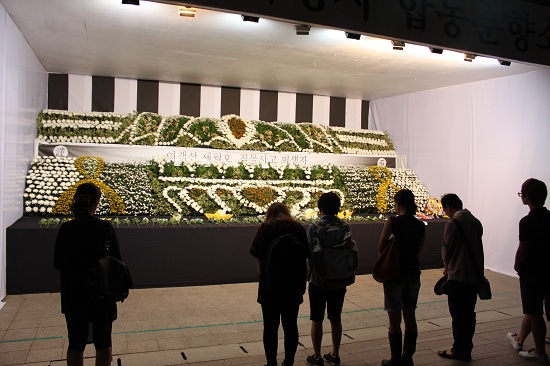 ▲ 서울광장 한켠에 마련된 분향소에서 희생자들에게 헌화하고 추모하는 시민들. ⓒ배상철