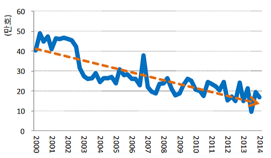 주택거래량은 지난 2000년 이후로 일시적으로 증가하기는 하지만 장기적으로는 하락세를 보인다. 선 소장은 이를 두고 “구조적 침체기에 빠져있다”고 설명했다.