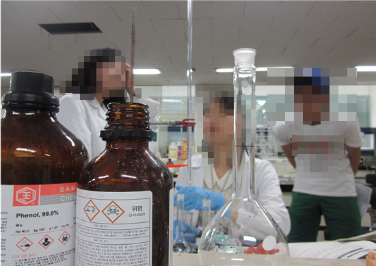 "학부 실험실도 처음 들어갈 때 안전교육은 받아요. 보호안경, 마스크, 실험복 착용도 첫 학기에는 실험실 조교가 엄격하게 단속하죠. 하지만 2학기부턴 학생 자율에 맡겨요. 한 번 교육도 했고, 학부 과정에선 취급하는 약품 수도 적으니 조교도 크게 강요하지 않아요."