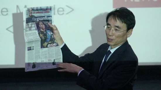 세명대학교 이봉수 저널리즘스쿨대학원장은 준비해온 80여 개의 슬라이드와 영상, 그리고 외국 신문들을 보여주며 ‘미디어와 사회: 잘못된 만남과 새로운 만남’을 주제로 강연했다. 이 원장은 “언론과 민주주의는 뗄 수 없는 관계에 있다”며 “신문은 사회를 읽어내고 변화를 모색하기 위한 단서를 제공하지만 지금 한국언론은 그런 기대에 부응하지 못하고 있다”고 진단했다.