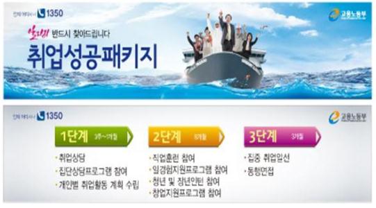 지난 2009년부터 취약계층을 대상으로 시범 운영된 취업성공패키지는 점차 범위를 청년층과 중장년층까지로 확대, 지난해엔 11만 8천여 명이 참여했다. 구직자가 거주지 관할 고용센터에 참여를 신청하면 1단계로 한달간 개별 및 집단상담을 받고 2단계로 각자의 의지와 역량에 맞는 직업훈련을 이수하게 된다. 간호조무사, 컴퓨터, 바리스타 등의 다양한 직업훈련비용은 전액 혹은 일부를 정부에서 지원한다. 훈련을 마치면 3단계로 구직자에게 취업상담 및 알선, 동행면접 서비스 등이 제공된다. 단계마다 성실히 이수한 사람에게는 생활비와 참여수당 등이 지급되고 이들을 고용한 기업은 1인당 최대 860만원의 고용촉진지원금을 받을 수 있다.