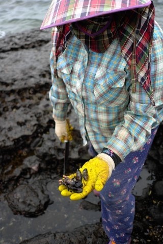 "홍합이요. 한국 토종 홍합이에요. 집에 가서 먹을라고. '져냥'하기 위해 캐는 거예요."