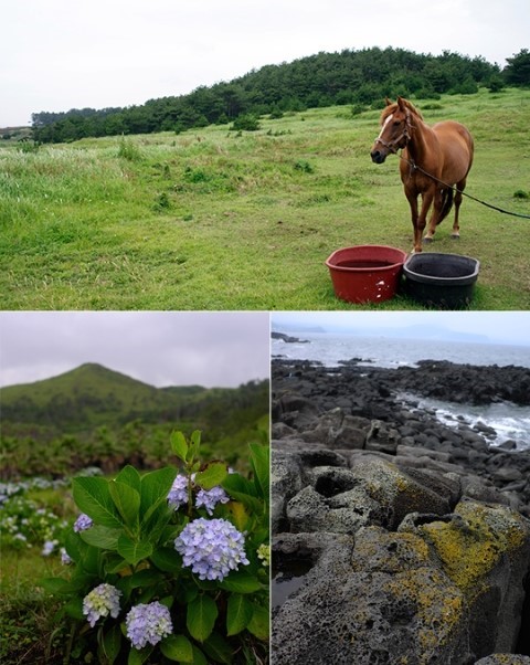 제주 여행은 하늘에서부터 시작된다. 비행기가 구름 속을 뚫고 내려간다 싶더니 제주도가 선명하게 모습을 드러낸다. 제주도는 푸른 하늘과 푸른 바다를 배경으로 푸른 산과 푸른 들이 끝없이 펼쳐지는 천혜의 관광지다. 푸른 빛 일색에 눈이 시릴까 봐 가끔은 기암괴석이 검은 자태를 드러낸다.
