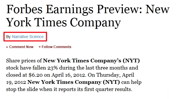 지난 6월 미 컬럼비아 저널리즘스쿨 토우센터의 닉 디아카풀로스 연구원은 특허 때문에 공개되지 않았던 로봇저널리즘의 핵심 알고리즘을 분석해 그 작동과정을 공개했다. 닉은 로봇이 기사를 작성하는 과정을 크게 다섯 단계로 나눴다.