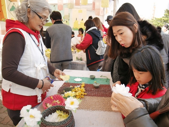 외부 부스에서는 연등회 초롱등, 전통지화, 전통팔찌 만들기 등의 체험 프로그램들이 진행됐다. 전통지화를 만든 김은혜(27•경기도 가평군) 씨는 “어렵지 않고 단순한데다 친절히 가르쳐줘서 아이들도 즐겁게 따라 했다”고 말했다.