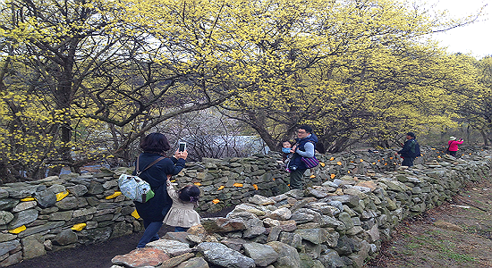 가족과 함께, 혹은 친구나 연인과 함께 휴일 나들이를 온 관광객들은 흐드러지게 핀 산수유꽃의 아름다움에 감탄사를 연발했다. 서울에서 왔다는 이정연(55)·최정란(55)씨 부부는 “산수유가 군락을 이루고 있어서 그 자체로도 무척 아름다운데 비까지 내려 운치가 있다”며 “다른 유명 꽃 축제와 비교해도 손색이 없다”고 말했다. 경기도 광주시 태전동에서 왔다는 최연경(38·여)씨는 “몇 년 만에 가족과 함께 나들이를 나왔다”며 “아이들을 데리고 밖에 나온 것만으로도 좋은데 이렇게 노란 산수유꽃을 배경으로 사진도 찍고 정말 즐겁다”고 말했다.