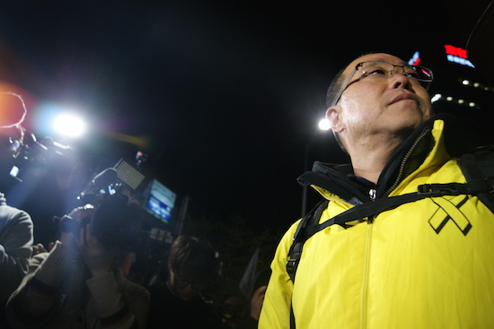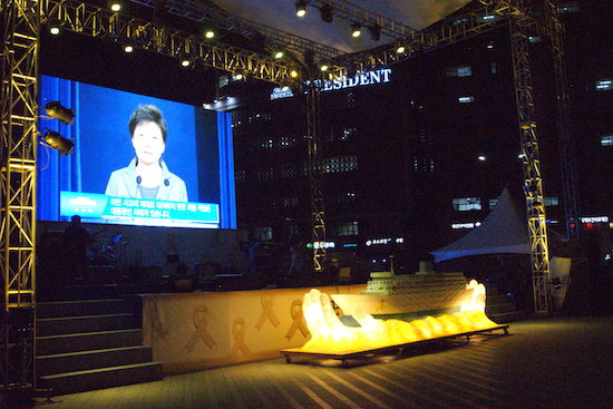 16일 저녁 9시 30분쯤 서울 태평로 서울광장. 세월호 참사로 희생된 최윤민(단원고)양의 언니 윤아(24)씨가 발언대에 올라 울먹이는 목소리로 참담했던 ‘그날’을 떠올렸다. 여기저기서 어깨를 들썩이며 함께 흐느끼는 사람들이 보였다. 최씨는 “사고 이후 많은 사람들이 우리에게 미안하다고 했는데, 정작 그 말을 해줬으면 하는 사람에게는 듣지 못했다”며 “제발 우리가 이 나라에서 숨 쉴 수 있도록 세월호를 인양하고 (잘못된) 시행령을 폐기해달라”고 호소했다. 최씨의 연설이 끝나자 옷깃에 노란 추모리본을 달고 손에는 하얀 국화꽃을 쥐고 있던 시민들이 긴 박수를 보냈다.
