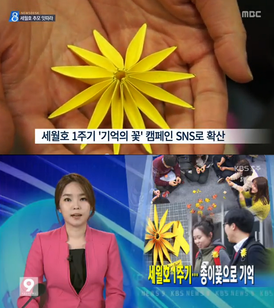 <단비뉴스>가 세월호 참사의 희생자와 교훈을 잊지 말자는 취지에서 지난 1일부터 진행 중인 ‘기억을 꽃피워주세요’ 캠페인에 각급학교 학생들의 단체 참여와 유명인들의 호응 등 시민들의 동참 열기가 이어지고 있다. 특히 세월호 참사 1주기인 지난 16일에는 하루 동안 트위터, 페이스북, 인스타그램 등 각종 사회관계망서비스(SNS)에 ‘기억의꽃’ 인증사진 수백 건이 올라왔다. 이 캠페인은 <단비뉴스>가 제작한 동영상이나 도안을 보고 종이 국화를 접은 뒤 ‘#기억의꽃’ 또는 ‘#기억을꽃피워주세요’라는 해시태그를 달아 각자의 SNS에 공유하는 방식으로 이달 말까지 계속된다.