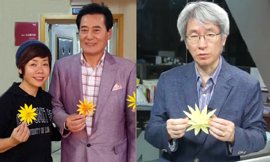 유명인들도 속속 참여했다. 방송인 김미화씨는 지난 22일 라디오 프로그램을 진행하는 서울 예장동 교통방송(TBS)의 휴게실에서 <단비뉴스> 취재팀과 만나 노란 종이로 직접 기억의꽃을 접었다. 김씨는 “세월호는 생각만 해도 아프다”며 “국민들에게 이렇게 어려운 상황이 닥쳤을 때 ‘국민들의 눈물을 닦아주지 못하는 나라’라는 것을 확인하는 안타까운 시간들이었다”고 말했다. 그러면서 “꽃을 접는 잠깐의 시간동안이라도 경건한 마음으로 세월호를 기억할 수 있어 좋았다”며 많은 사람들의 동참을 부탁했다.