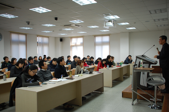| 세명대 저널리즘스쿨 특강은 <인문교양특강I> <저널리즘특강> <인문교양특강II> <사회교양특강>으로 구성되고 매 학기 번갈아 가며 개설됩니다. 저널리즘스쿨이 인문사회학적 소양교육에 힘쓰는 이유는 그것이 언론인이 갖춰야 할 비판의식, 역사의식, 윤리의식의 토대가 되고, 인문사회학적 상상력의 원천이 된다고 생각하기 때문입니다. 1학기 <사회교양특강>은 조준상 박인수 홍기빈 김동춘 구갑우 전중환 박상훈 선생님이 강연을 맡았습니다. 학생들이 제출한 강연기사 쓰기 과제는 강연을 함께 듣는 지도교수의 데스크를 거쳐 <단비뉴스>에 연재됩니다. |