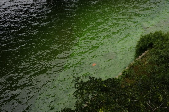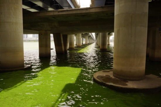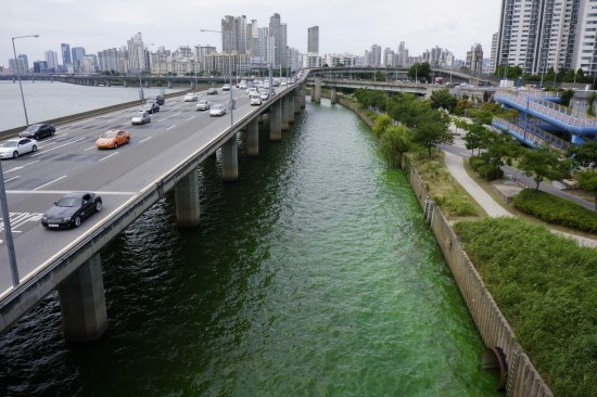 ▲ 평소 검푸른 빛을 띠던 한강은 녹조 현상으로 나뭇잎처럼 초록빛을 띠었다. ⓒ 서혜미