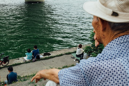 ▲ 성산대교 북단 망원한강공원 둔치에서 초록빛으로 변한 강물을 앞에 두고 시민들이 휴식을 취하고 있다. ⓒ 하상윤