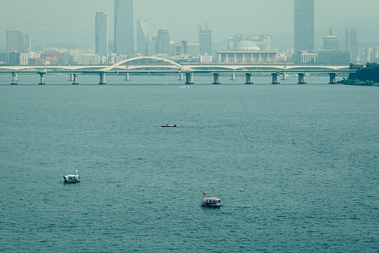 ▲ 마포대교 위에서 서강대교 쪽을 바라보면 녹조가 심하다. 3일 서울시는 마포대교에서 채수한 시료에서 독성 물질이 있는 조류가 검출됐다고 밝혔다. ⓒ 서혜미