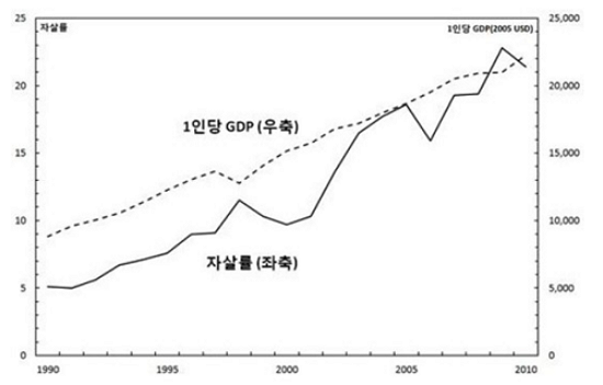 산업활동이 활발해지면 사람들은 더 나은 삶을 누릴까? 산업은 날로 효율이 높아지고 벌이를 늘려가는데, 사람들은 오히려 삶을 포기하고 있다. 한국에서는 국내총생산이 늘어나는 만큼 자살률도 늘고 있는 것이다. 사람을 저버린 ‘자살친화적 성장’의 결과다. 이렇게 성장과 자살률이 밀접하게 연관된 국가는 한국이 유일하다.
