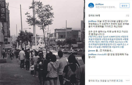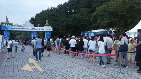 제11회 제천국제음악영화제(JIMFF)가 열리는 동안 청풍호반무대 일대는 어느 해보다 뜨거웠다. 음악영화 한 편과 초대 가수들의 공연 무대로 구성된 '원 썸머 나잇'은 14일부터 사흘동안 ‘스타리 나잇(STARRY Night)’, ‘멜로 나잇(MELLOW Night)’, ‘파티 나잇(PARTY Night)'이라는 주제로 매일 밤 관객들의 마음을 사로잡았다. 예매 첫날인 14일 제천 메가박스와 현장 매표소에는 이른 아침부터 영화 <오페라의 유령>과 가수 이승환, 4인조 밴드 솔루션스, 최근 MBC '무한도전'을 통해 얼굴을 알린 혁오의 무대로 구성된 첫 번째 밤 공연의 입장권을 예매하기 위해 몰린 사람들로 북적였다. 이날 스타릿 나잇 입장권은 2시간 30분 만에 매진 돼 제천국제음악영화제가 흥행에서도 성공했음을 알렸다. 제천국제음악영화제 사무국은 첫날 공연에 3200여명이 모인 것으로 집계했다.
